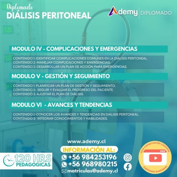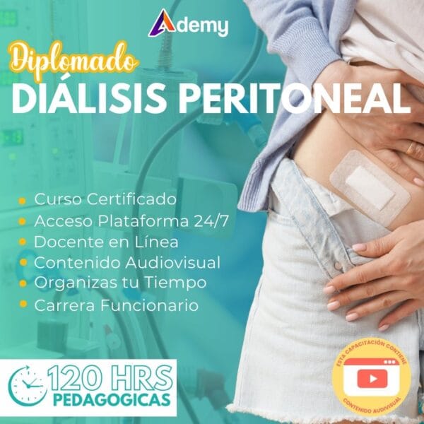 Diplomado asincrónico y audiovisual de 120 horas sobre diálisis peritoneal. Aprende evaluación, técnicas, manejo de complicaciones y últimas tendencias. Dirigido a profesionales del área de la salud.