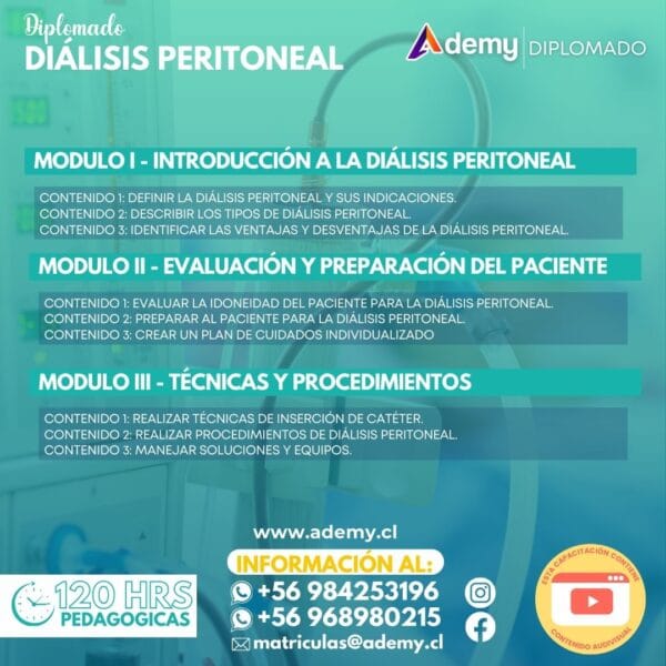 el Diplomado Diálisis Peritoneal es una instancia clave de especialización que permite adquirir conocimientos actualizados, prácticos y aplicables al contexto clínico, en una modalidad flexible y accesible para todos los profesionales del área.